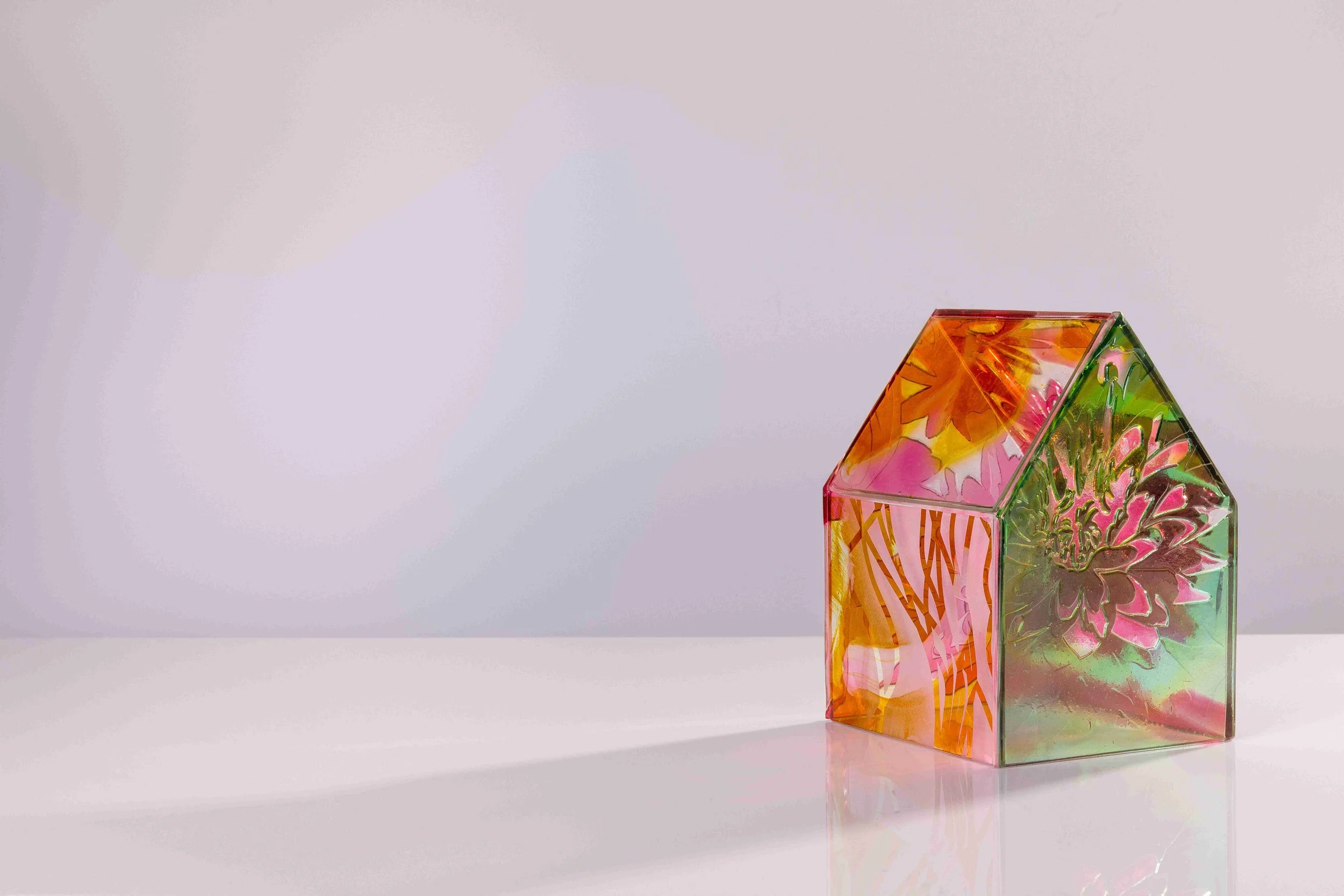 The house is one of the most loaded shapes we know — shelter, memory, self, belonging. This series takes that familiar form and fills it with the particular richness that only stained glass can offer: colour that lives and shifts with the light, surface that rewards looking, meaning that ranges freely between the playful and the profound.